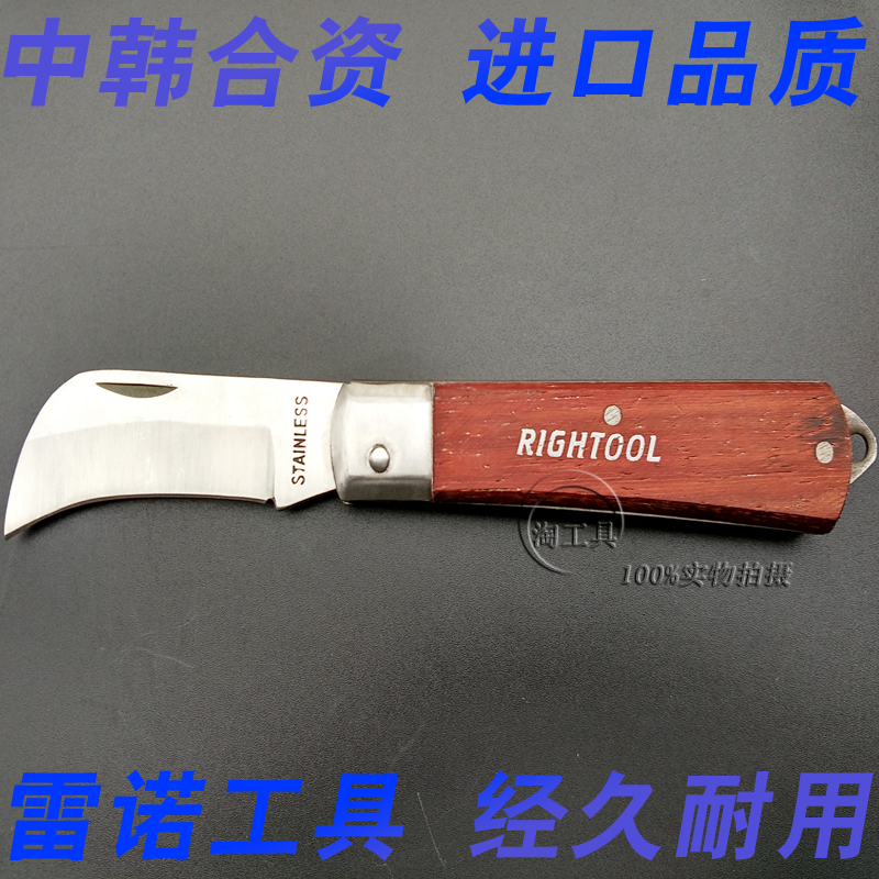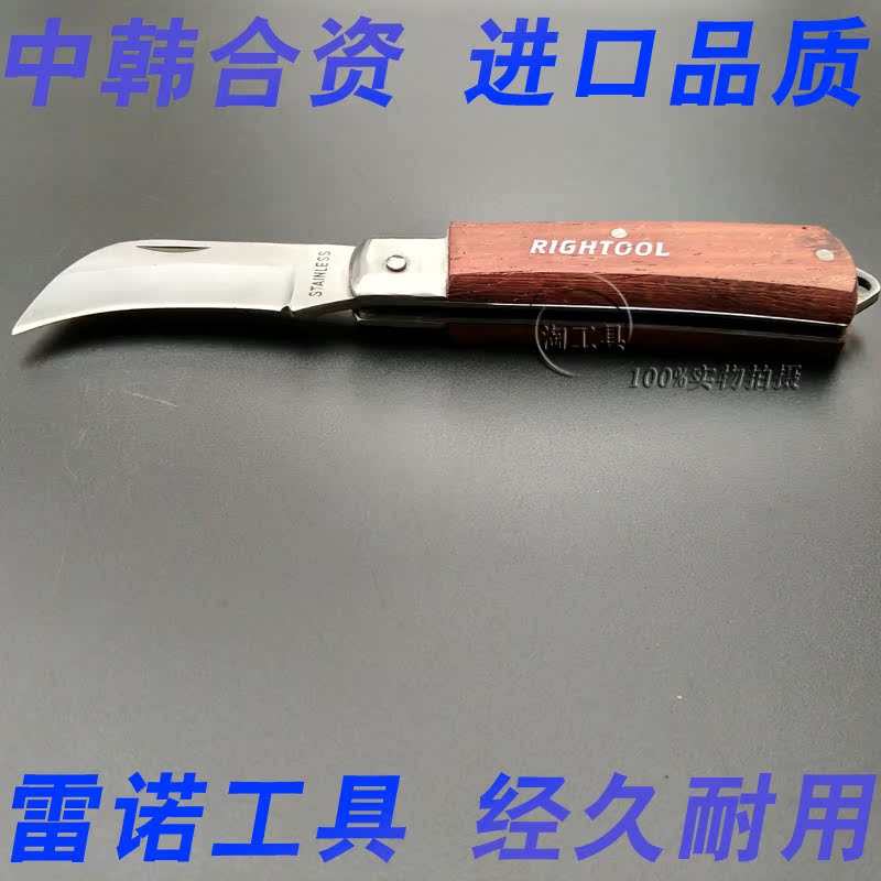 Renault Wood Handle Electrician Knife (Bend Edge) Renault Electrician Knife Exfoliating Knife Unrusted Steel Knife 65 Manganese Steel