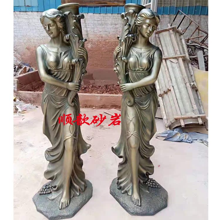 Sandstone glass fiber European-style exterior wall decoration Sculpture Hotel villa portrait Courtyard water portrait Maid statue