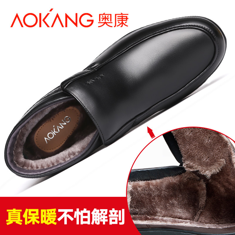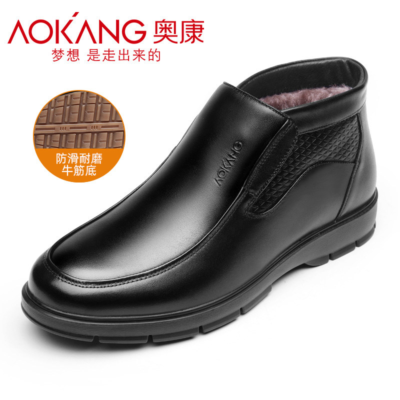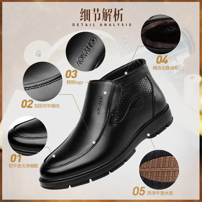 Okom Men Cotton Shoes Winter Warm Plus Suede Genuine Leather Casual High Drum Middle Aged Dad Shoes Father Cotton Leather Shoes