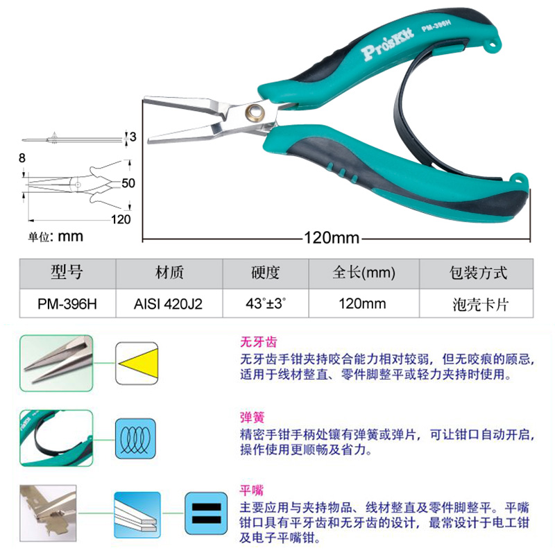 Imported Taiwan Baogong PM-396H stainless steel flat mouth pliers flat mouth pliers flat mouth pliers flat mouth pliers precision fish line pliers toothless
