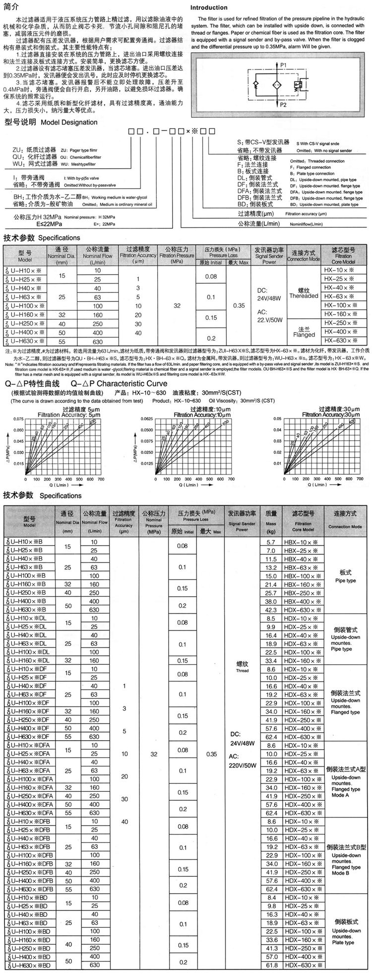 Hydraulic filter Oil filter ZU-H10 25 40 63100 63100 * 5 10 20 30-P DLP BDP