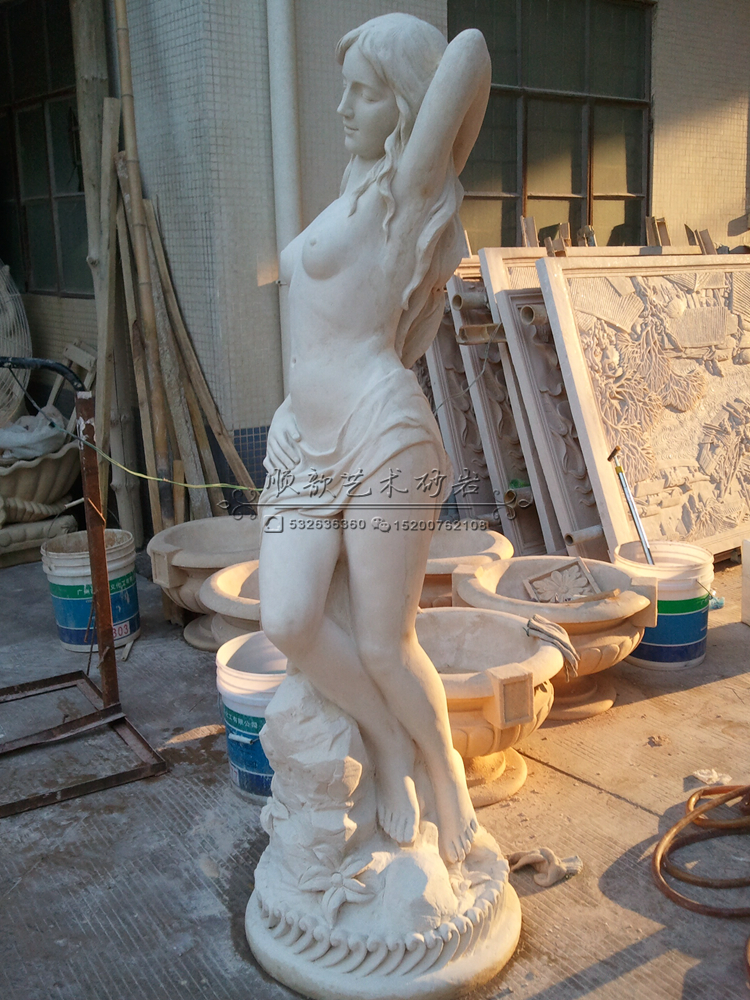 Sandstone fibreglass relief frescoes background wall flowerpots Roman columns landscaped sculptures spray women like sculptures