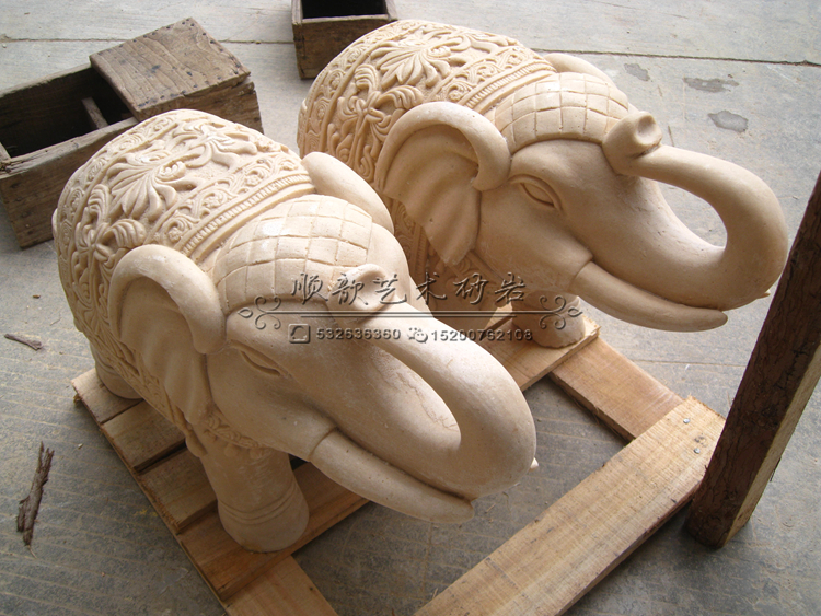 Shunxin Art Sandstone Relief Plastic Background Wall Villa Hotel Garden Furnishing Building Materials Round Sculpture Asian Elephants