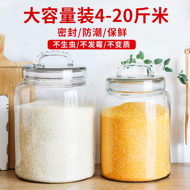 Glass sealed tank Rice bucket Glass bottle large household transparent kitchen grain storage tank pickle jar