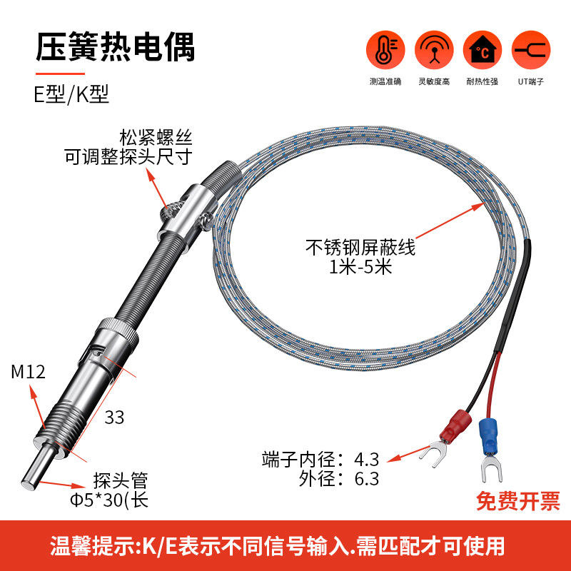 Thermocouple spring WRNT - 01K type lengthening temperature sensor temperature sensor probe screw stainless steel shielding line