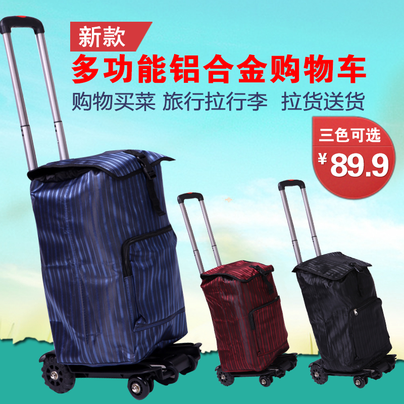 Folding four-wheeled hand-pulled cart portable shopping cart Grocery Cart Aluminum Alloy Home Travel Little Trolley Luggage Caravan