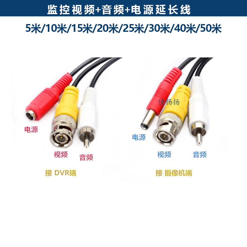 Monitoring one line Power video audio three-in-one finished line Bold BNC DC AV extension cable 5-50 meters