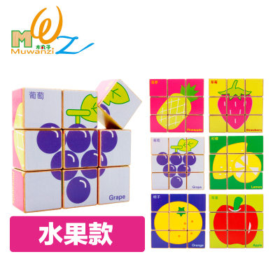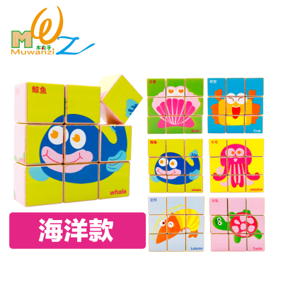 Wooden Six-sided Solid 3D Building Blocks Puzzle 9 Grain Puzzle Children Early Lessons Intelligence Toys 3-4-5-6 years old