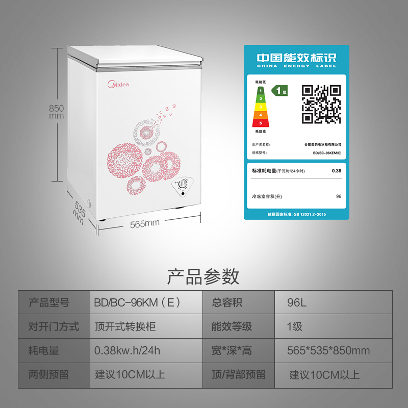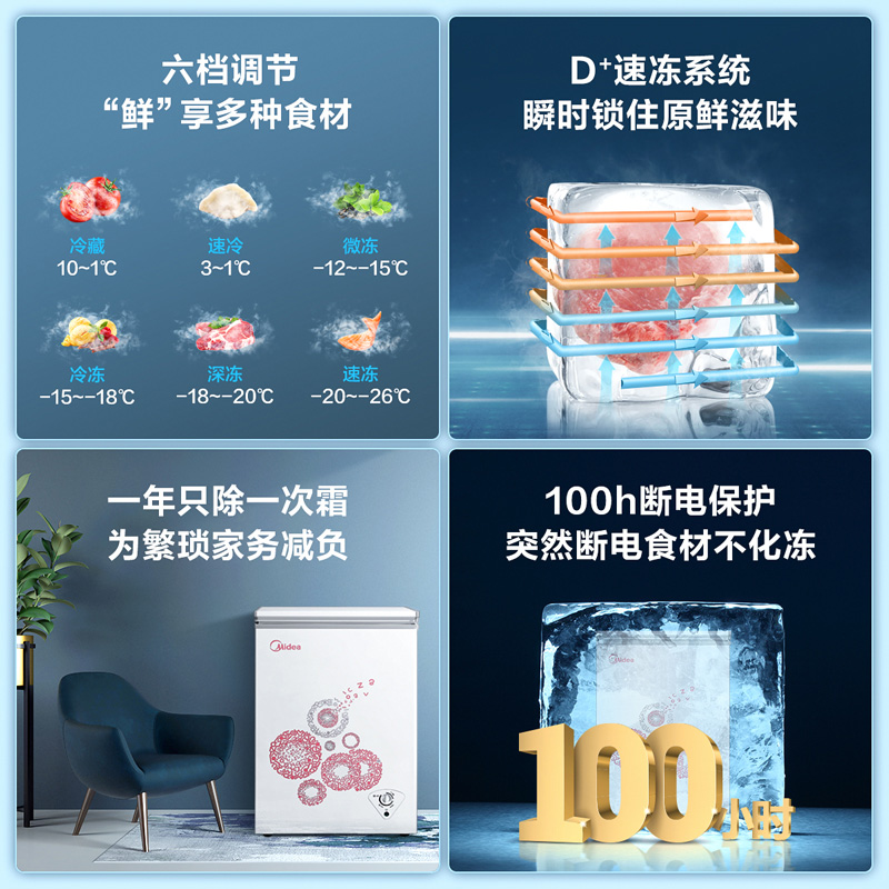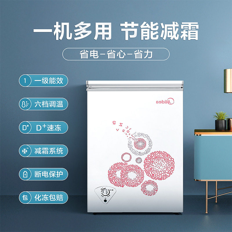 Midea 96 liter freezer Household commercial official small freezer Refrigerated frozen fresh dual-use mini small refrigerator