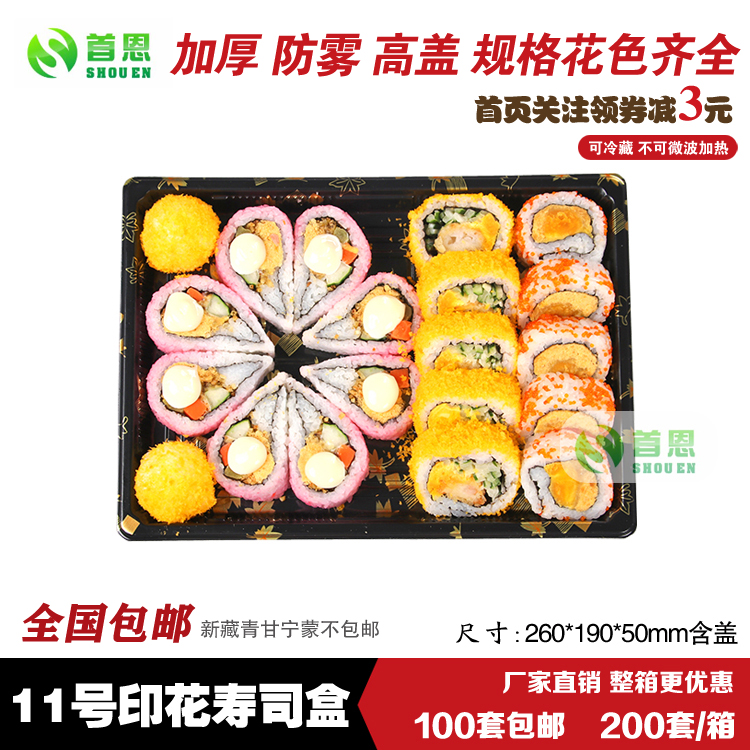 No. 11 high-end printing Japanese-style disposable rectangular commercial takeaway sushi packaging box commercial environmental protection