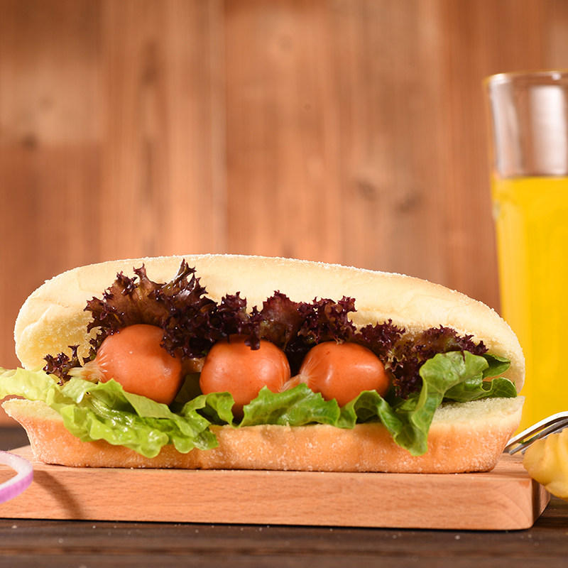 Bakers brand new brown rice snow printed hot dog bread embryo crispy crispy hot dog embryo factory direct sale casual fresh food