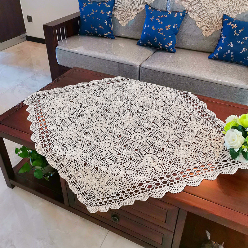 Ruyi Pure Handmade New Crochet Hook Flower Sofa Towel Pure Cotton Woven Hollowed-out Cloth Art Table Cloth Cover Towels TV cover