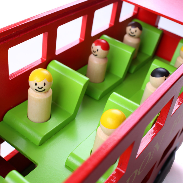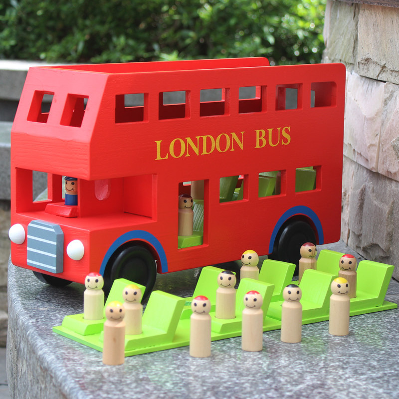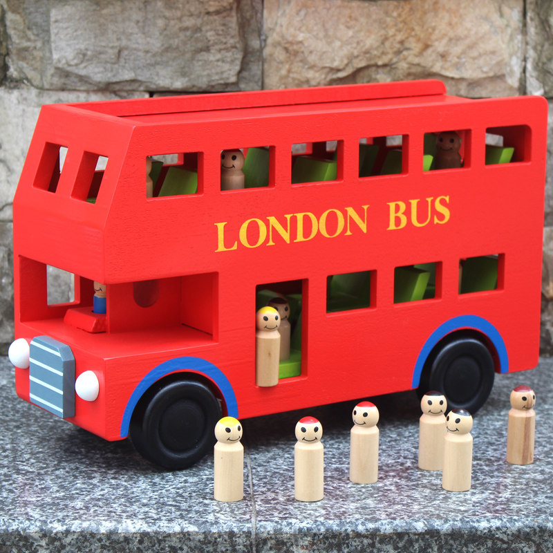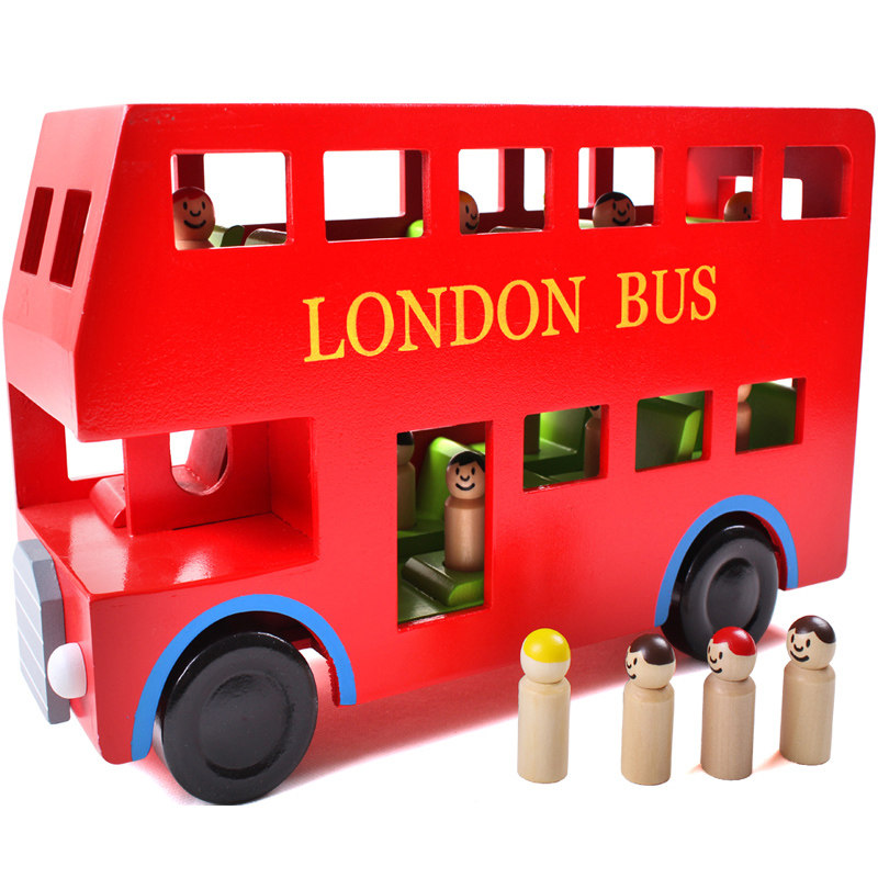 Children's car model transport large toy wooden bus double-decker London bus boy educational toy