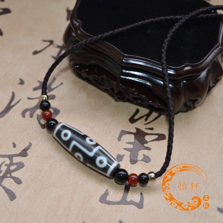 Tibetan natural chalcedony old mine agate nine-eyed Dzi necklace necklace necklace for men and women Dzi necklace gift box