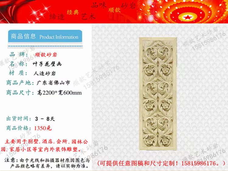 Shunxin Sandstone Special Price Eu Style Roll Leaf Flower Shaped Hotel External Wall Pendant Genguan Background Relief House Decoration