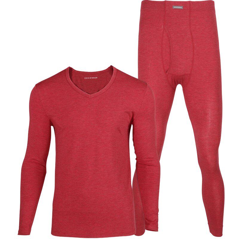 Schiesser shuja autumn clothes sanitary pants men's spring thin mix cotton V collar comfortable and breathable suit heating clothes