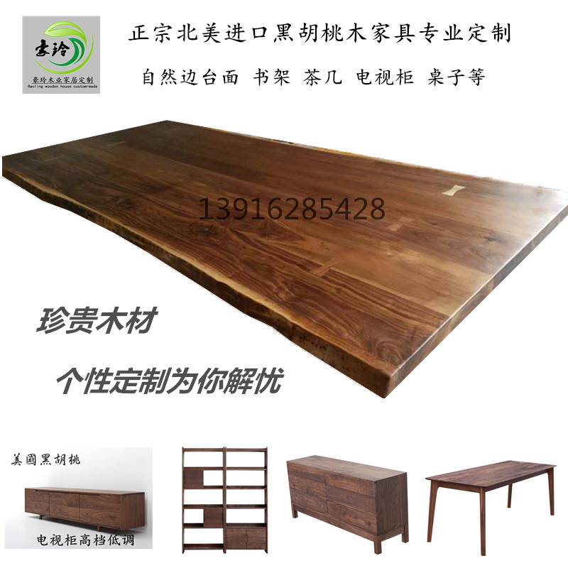 Black walnut tabletop board Solid wood wood North American furniture Log Dining table custom countertop Bay window stepping board