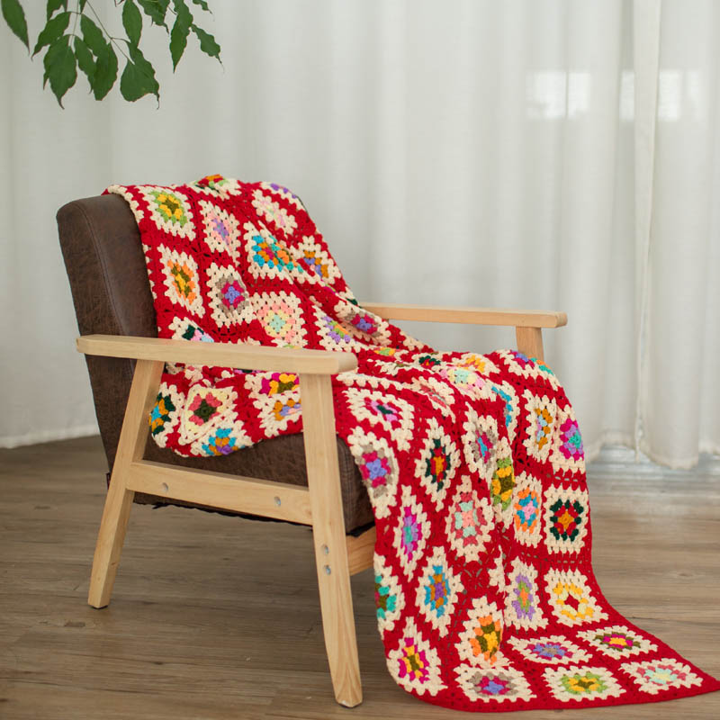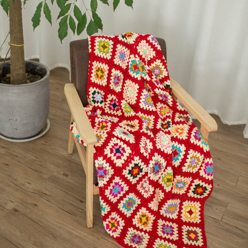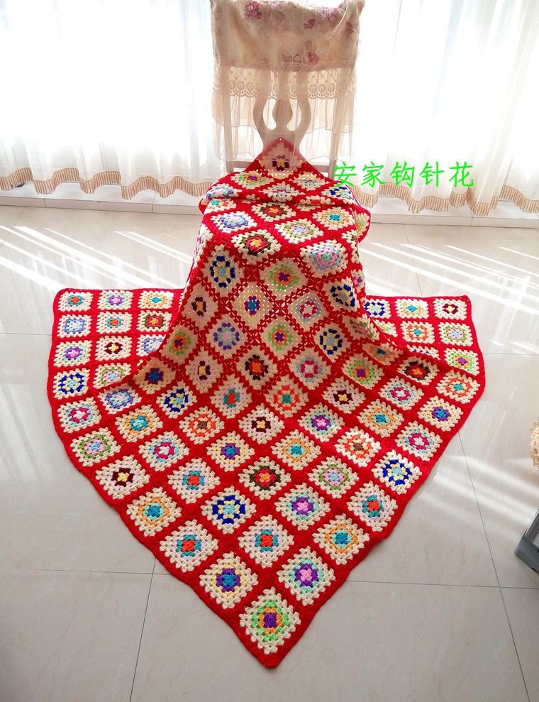 Festive Large Red Handcrafted Floating Window Mat Hand Crochet lace Lace Casual Blanket Grandmother Block Crochet Collared Sofa Towel Bed Hood