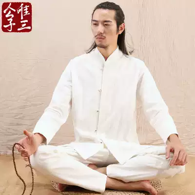 Only three Bodhi Enlightenment meditation tea suit male residences Chinese style shirt Buddha system Tang suit Han clothing male ancient wind fairy Autumn Winter