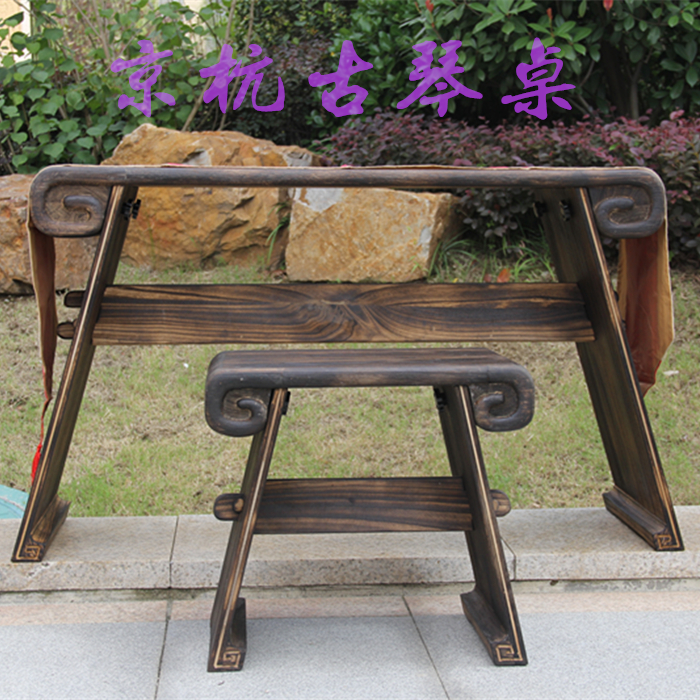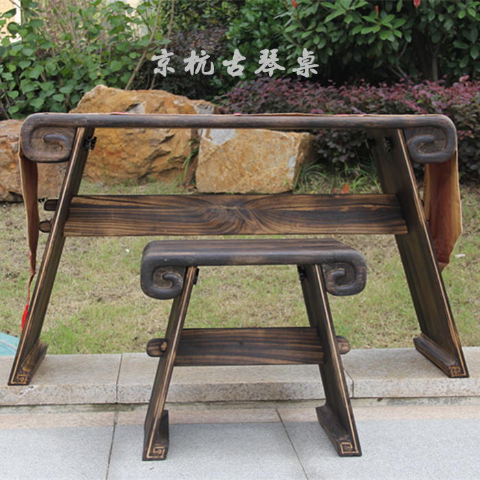 Classic Ruyi Back Grain Straight Line Shaped Guqin Table Detachable Guqin Table Stool Upscale Ruyi Back Tattooy Guqin Table