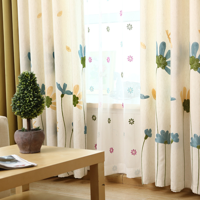 2020 new cotton embroidery pastoral style small fresh floor-to-ceiling floating curtains finished semi-shading bedroom fabric customization
