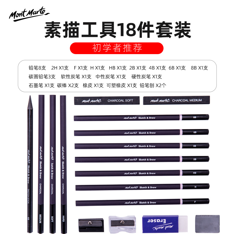 Mont Martic sketch pencil suit graphite lead core drawing HB2BF student pencil 18 pieces set