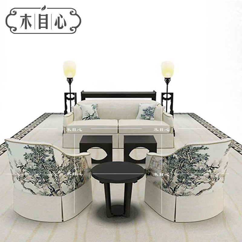 New Chinese Fabric Sofa Combination Hotel Club Protomroom Solid wood Removable Leisure Sofa Furniture
