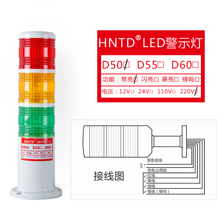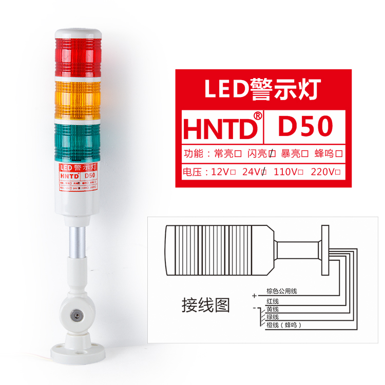 HNTD50 warning lamp three color LED three layer sound light alarm DC24V can add buzzing machine tower lights