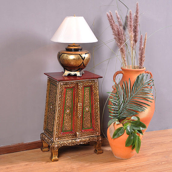 Thai Club Hotel Decoration Cabinet Corridor Entrance Cabinet Exquisite Solid Wood Bedside Cabinet Southeast Asian Handicraft Shoe Cabinet