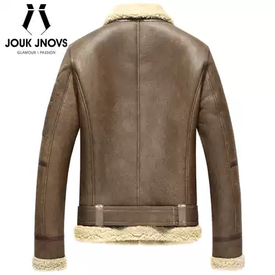 Light luxury high-end men's motorcycle leather wool one men's leather jacket short thick leather jacket coat