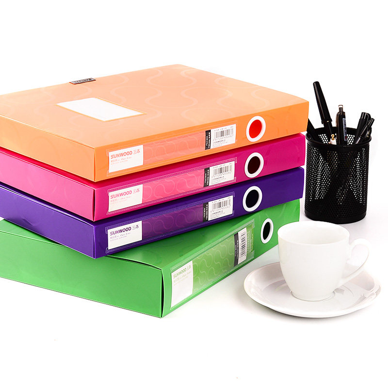 Three wood color file box A4 plastic large capacity 55mm document document contract classification storage folder Personnel accounting certificate box Office supplies wholesale with side label