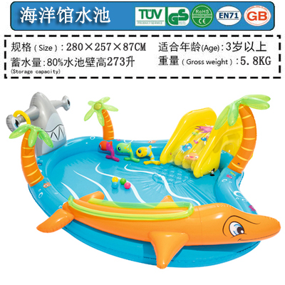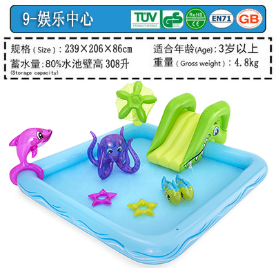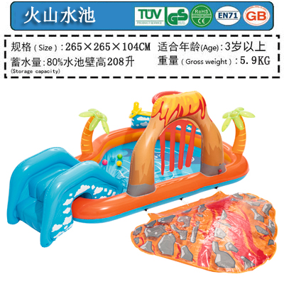 Sky blue, brown, yellow, blue, orange, undersea amusement pool, turtle fountain, cruise ship pool, small train pool, basketball pool, farm amusement pool, aquarium pool, bowling pool, volcano pool, unicorn play