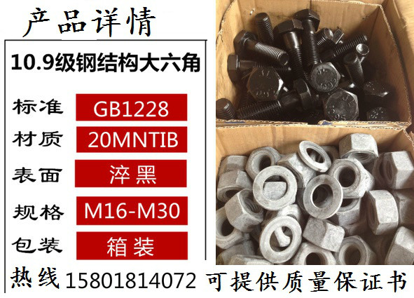 GB1228 High-strength big hexagon bolts for steel structure 10 grade 9 big hexagon head screws M24*55-200