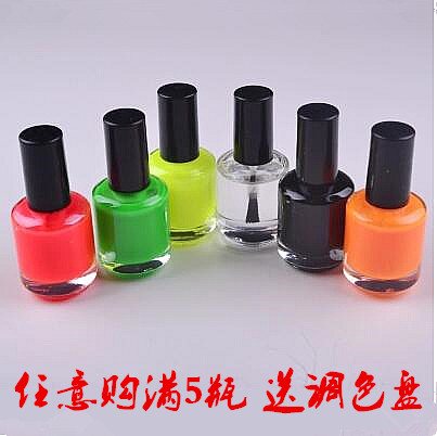 Red (fluorescent) -7 ml of yellow (fluorescent) -7 ml of green (fluorescent) -7 ml of orange (fluorescent) -7 ml of black (fluorescent) -7 ml of white (fluorescent) -7 ml of diluent transparent -