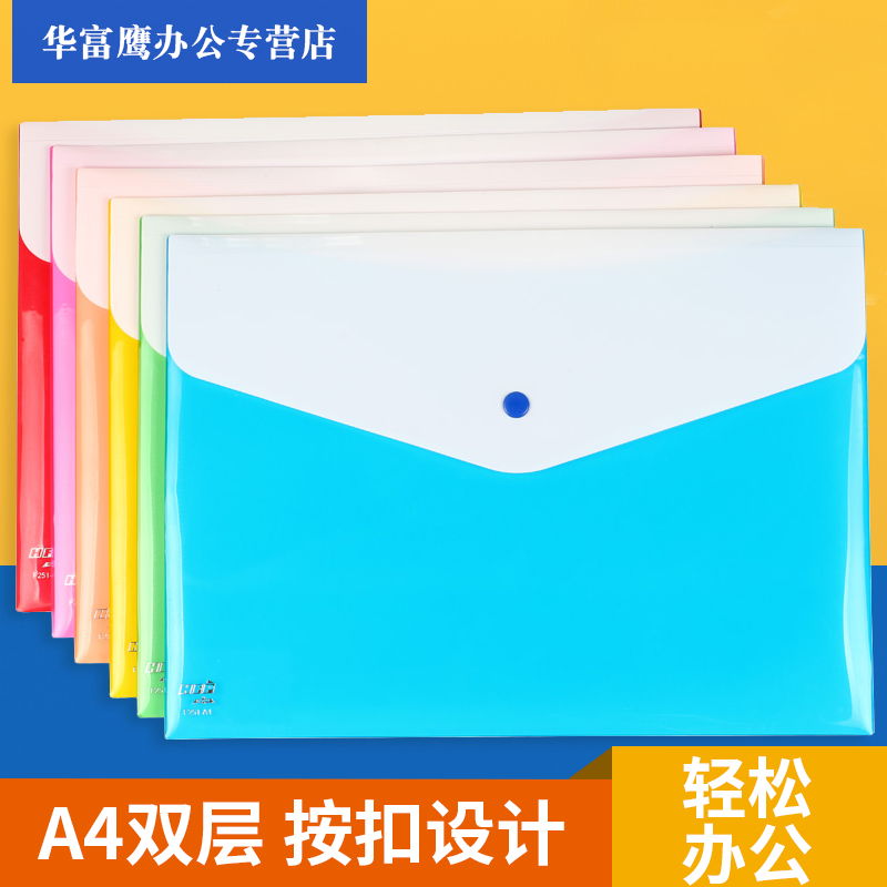 Huafu eagle stock A4 double layer by buckle file bag transparent color plastic file cashier bag student paper bag file bag plastic student with large capacity a4 file bag file bag file bag