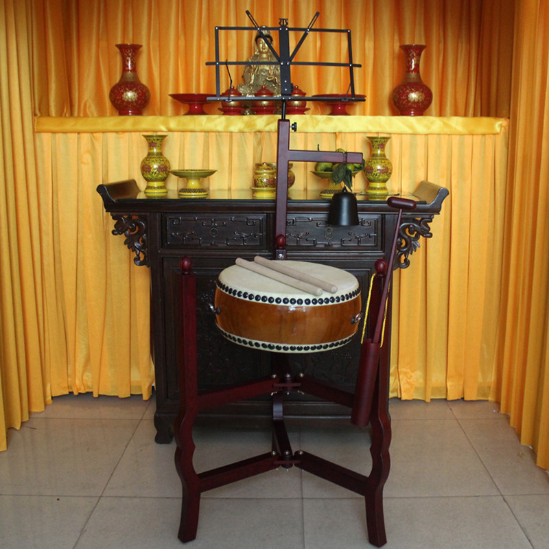 Puja bell drum rack Temple instrument banging musical instrument Large imitation mahogany tambourine rack 14 inch cowhide drum rack
