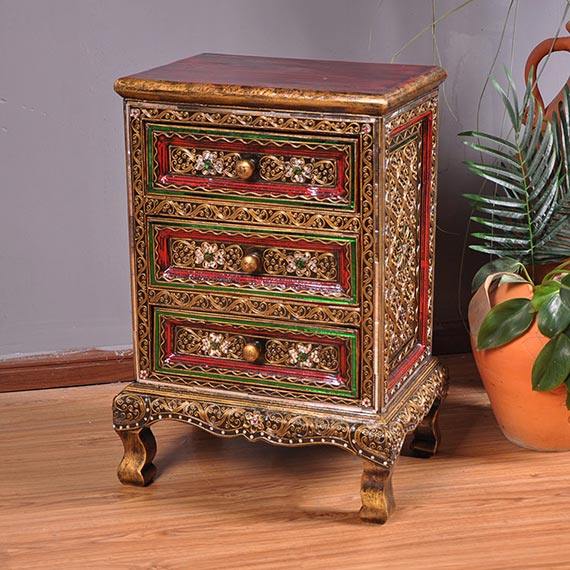 Thailand imports exquisite handicraft solid wood glass storage cabinet Thai style decoration room bedside table