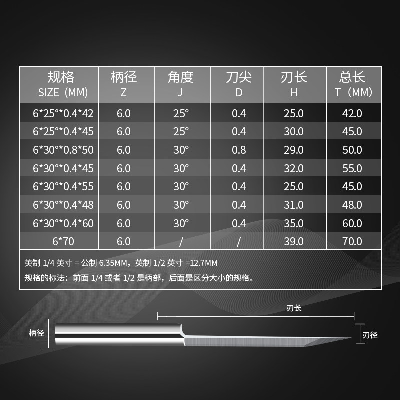 Flat-bottomed sharp knife 6 * 20 ° * 0 2 * 50 total length flat tip knife 6 * 20 ° * 0 4 * 50 total length flat tip knife 6 * 30 ° * 0 2 * 50 Total flat-bottomed flat tip knife 6 *