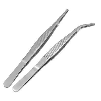 Stainless steel tweezers Elbow thickened round head with teeth 12 5-30cm tweezers Craft landscaping clip Niezi dressing clip