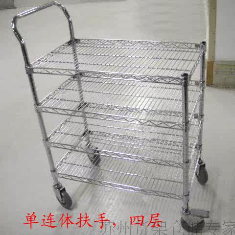 Four layers of armrail mesh chrome rotation grid mobile cart stainless steel 4 layer industrial line cart cart
