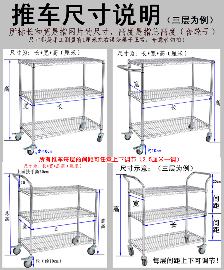 Without handrails length 60 width 45 total height 160 four layers with wheels without handrails 75*45* total height 160 four layers with wheels without handrails 90*45* total height 160 four layers with wheels without handrails 120