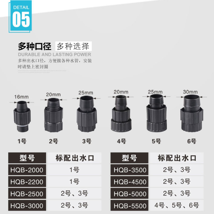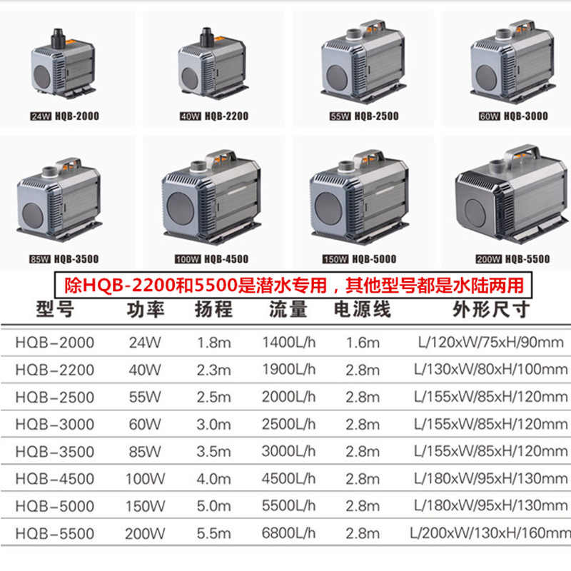 HQB2000 24W Send 2 meter water pipe HQB2200 40W send 2 meter water pipe HQB2500 55W Send 2 meter water pipe HQB3000 6