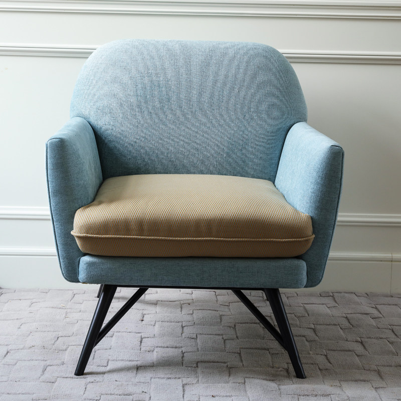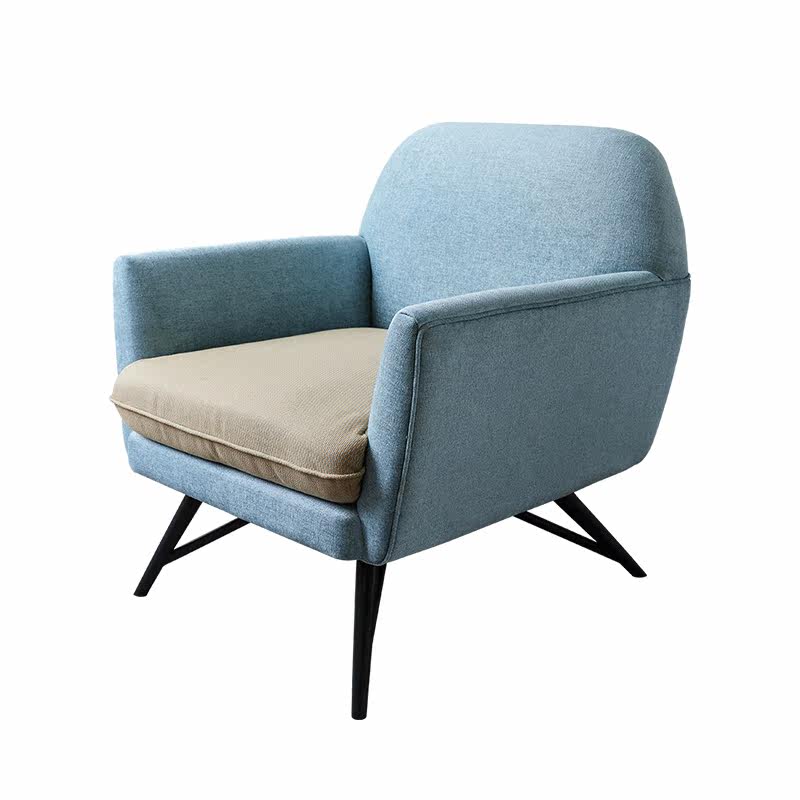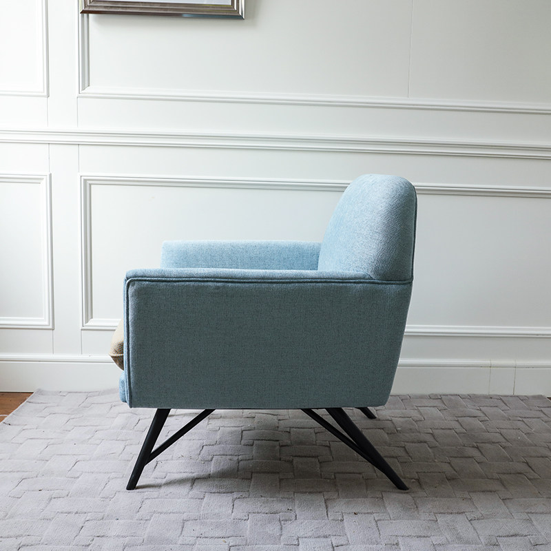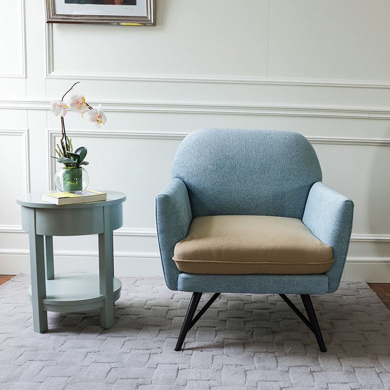 Nordic Simple Light Blue Single Sofa Soft Pack Solid Wood Leisure Sofa Chair Fabric Finished Small American Sofa