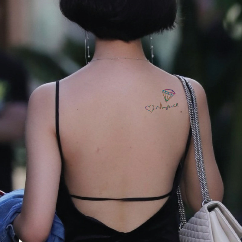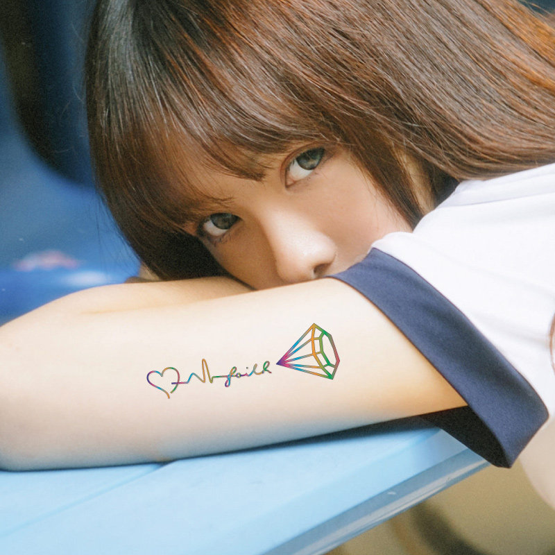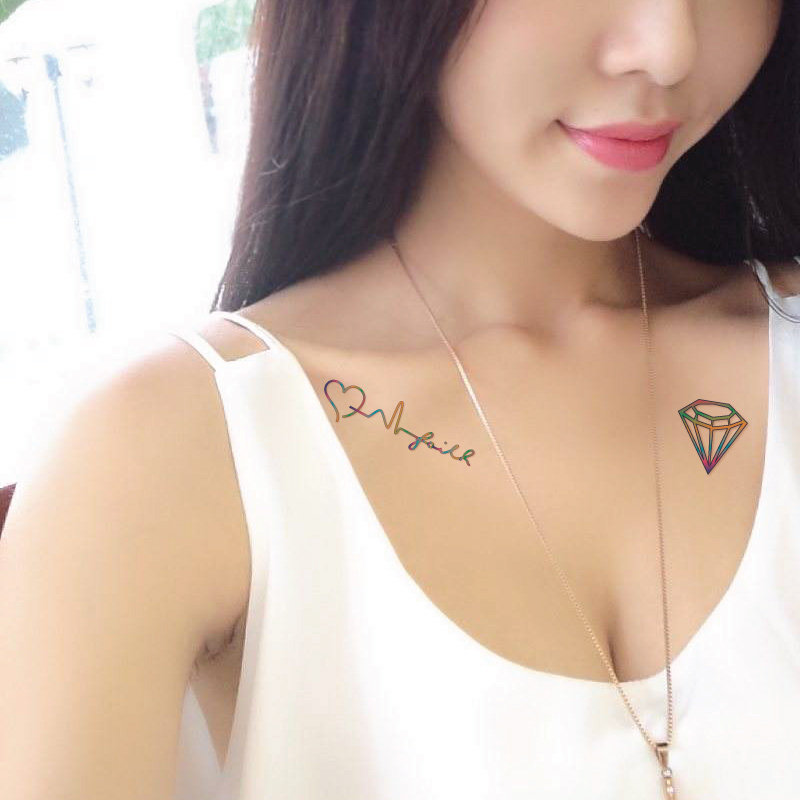 Small Fresh Sexy Fashion Wrist Arm Front Chest Woman Rainbow Diamond Electrocardiogram Tattoo Patch Waterproof Persistent P103