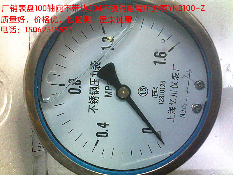 Dial 100 axial without edge 304 stainless steel shock-resistant pressure gauge YNB100-Z0-11 62 54MPA