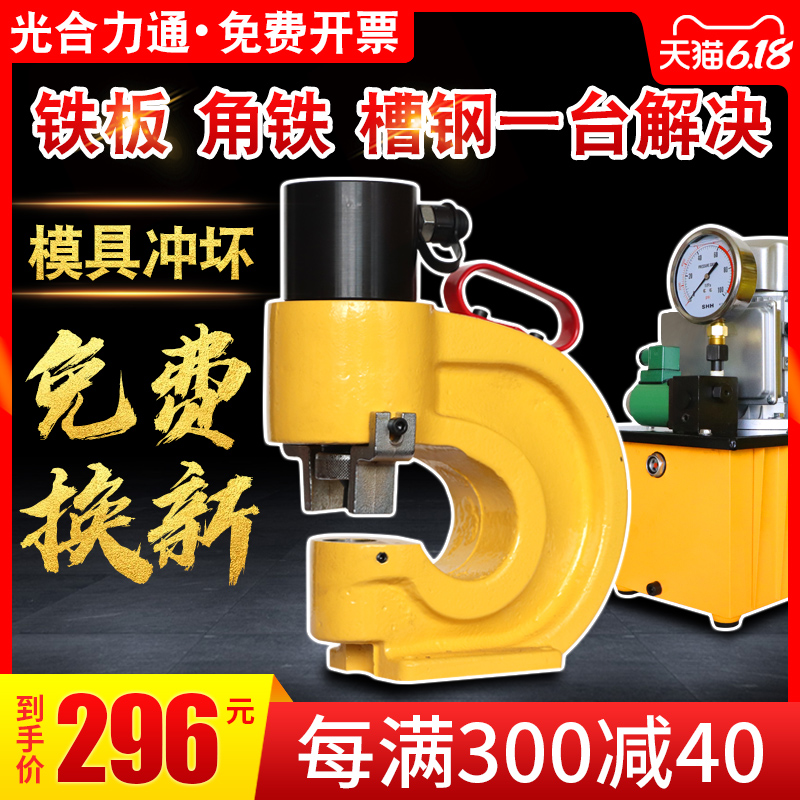 Punching machine Electric hydraulic punching machine Small hydraulic drilling machine Copper row angle iron channel steel two-piece manual drilling machine