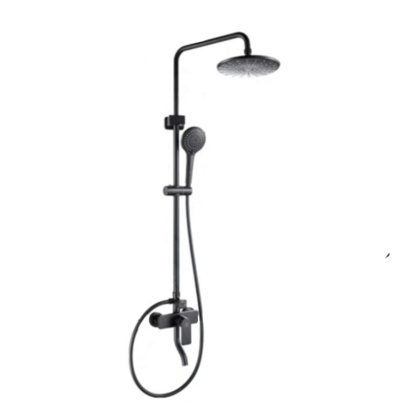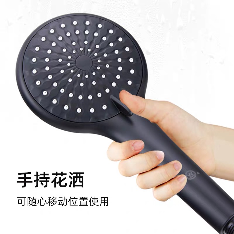 Shanghai Waigang Black Luxury Shower Shower Shower Set Surface Mounted Lifting Adjustment Supercharged Large Nozzle New Product 1912
