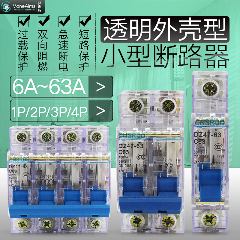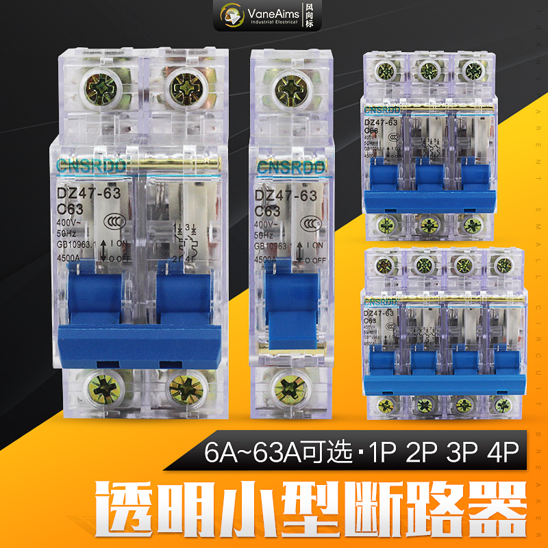 People transparent air open DZ47-63 1P 2P 3P 4P miniature circuit breaker site transparent air switch