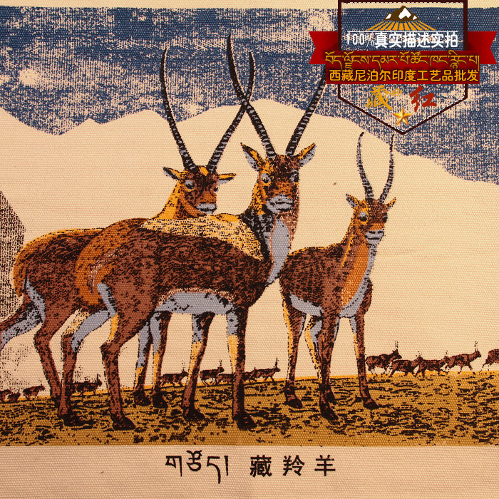 Saffron fashion simple modern frameless painting hand-painted Tibetan antelope canvas painting home retro decorative mural