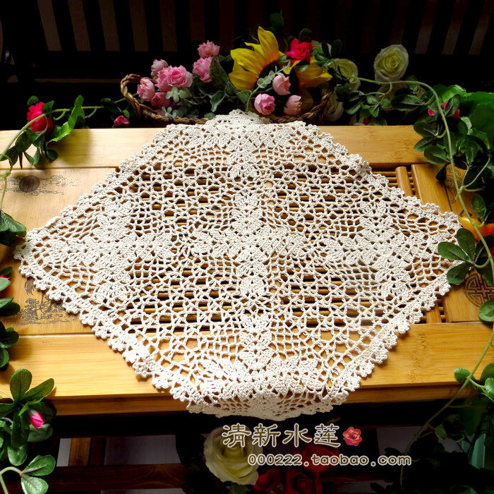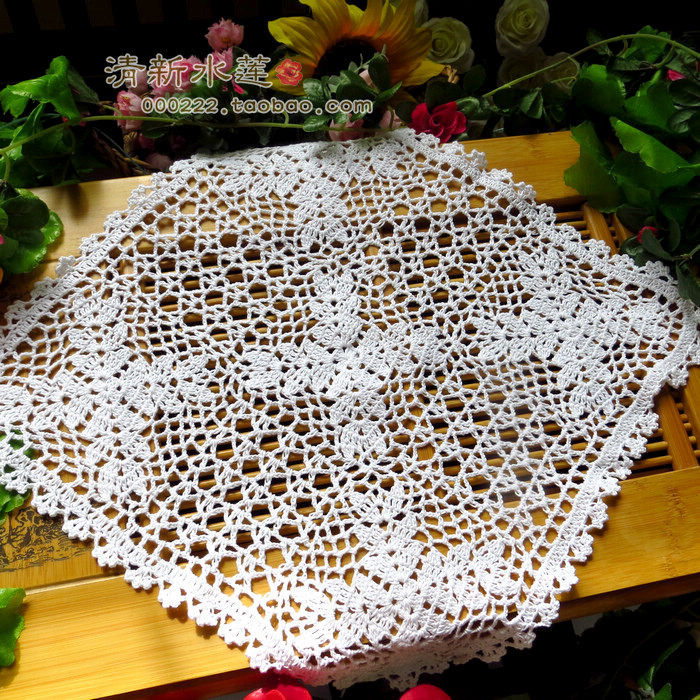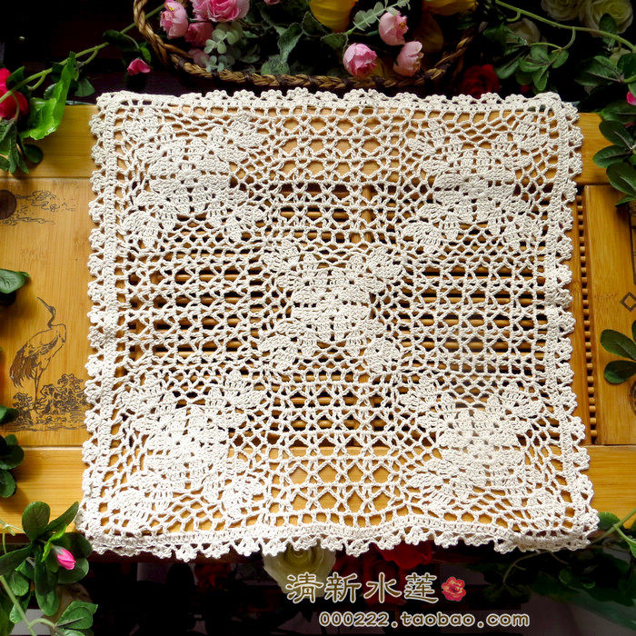 Fresh water lotus pure hand hook nostalgia retro lace weaving hollow Chinese dust cover scarf rice white